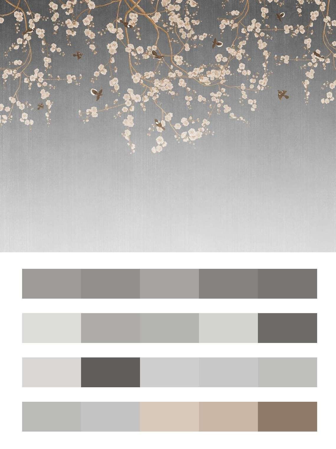 Бесшовные обои на стену: Веточка сакуры и птицы. Артикул: 9-1481