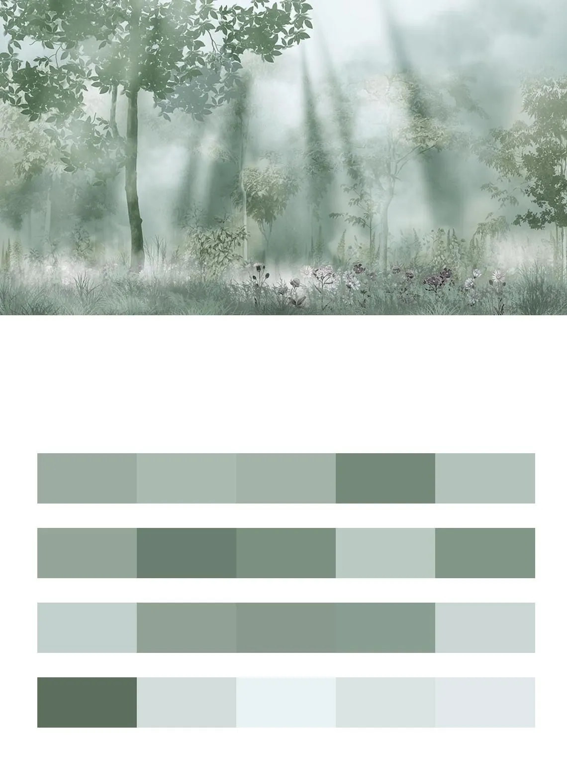 Бесшовные обои на стену: Рассвет в лесу. Артикул: 13-277