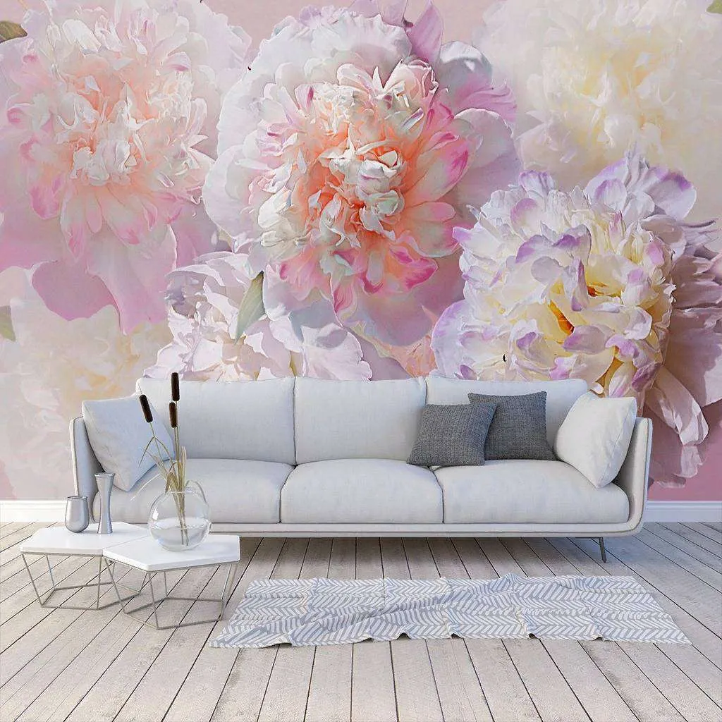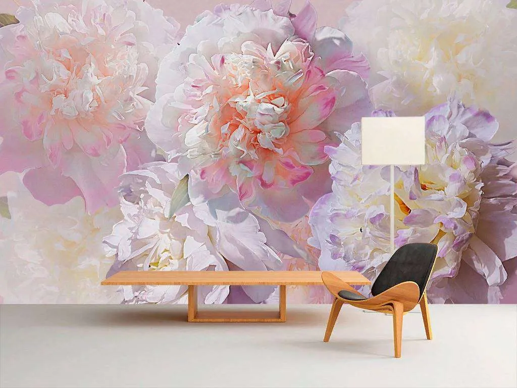 Бесшовные обои на стену: Пионы нежные 3д. Артикул: 13-229