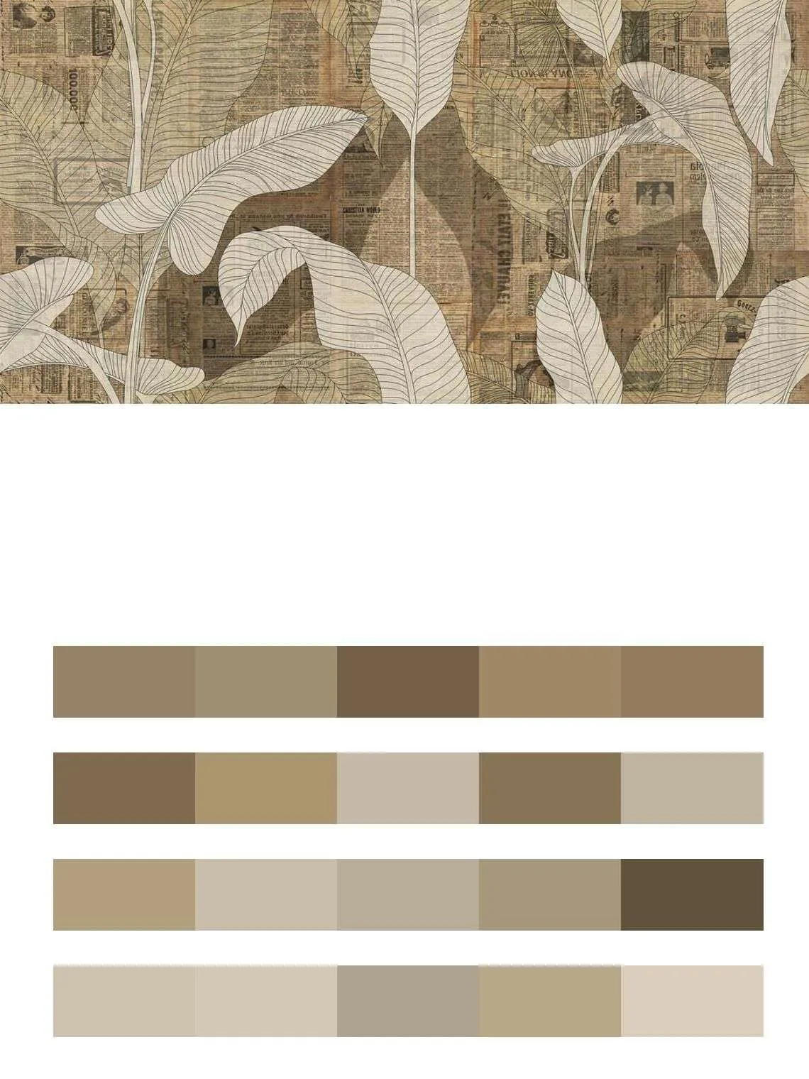 Бесшовные обои на стену: Старая газета с листьями. Артикул: 9-1245