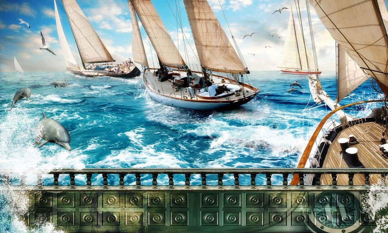 Бесшовные обои на стену: Флот кораблей. Артикул: 19-0127