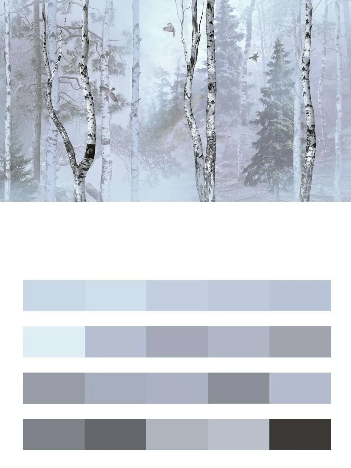 Бесшовные обои на стену: Птицы в березовом лесу. Артикул: 13-073