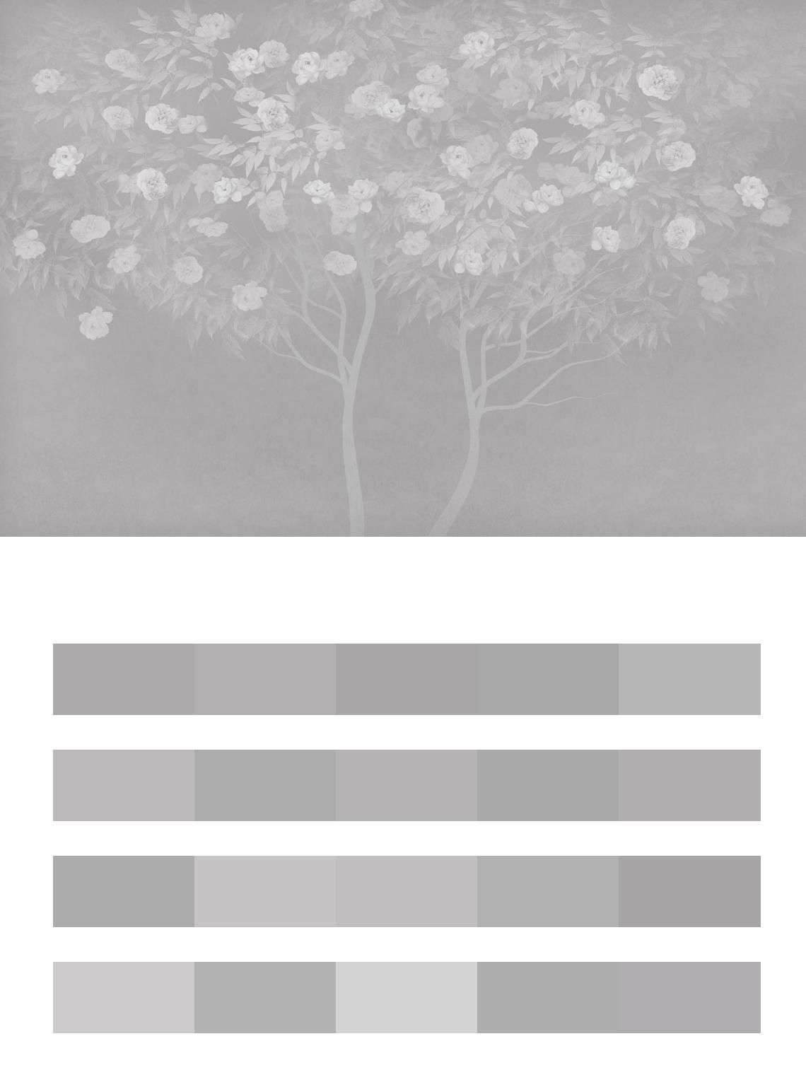 Бесшовные обои на стену: Дерево цветущее на сером фоне. Артикул: 13-586