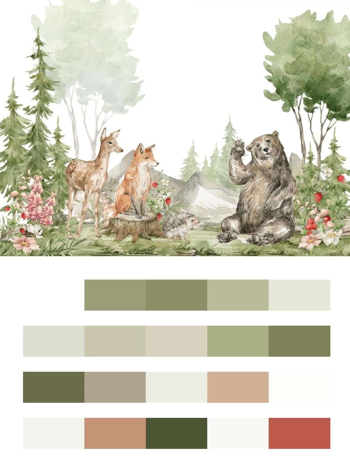 Бесшовные обои на стену: Лесные животные. Артикул: 14-592