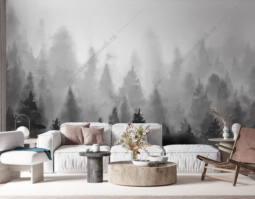 Бесшовные обои на стену: Чёрно-белый лес. Артикул: 9-1727