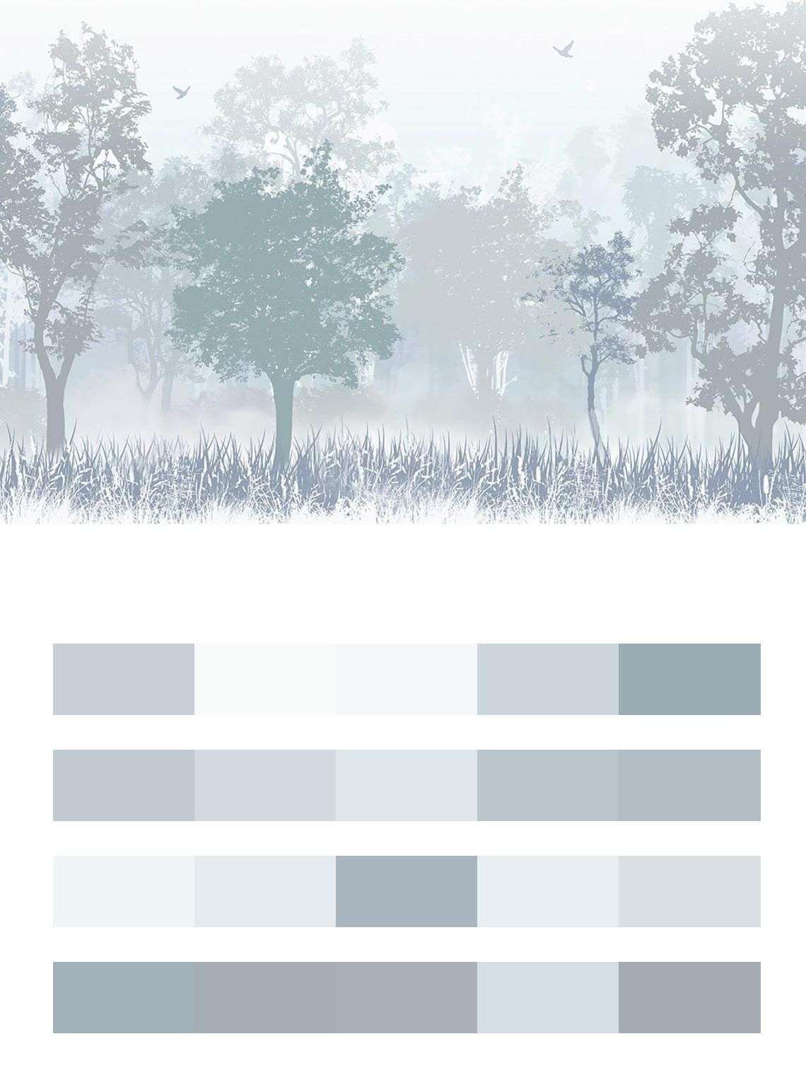 Бесшовные обои на стену: Нежный лес в тумане серо-голубой. Артикул: 9-1836