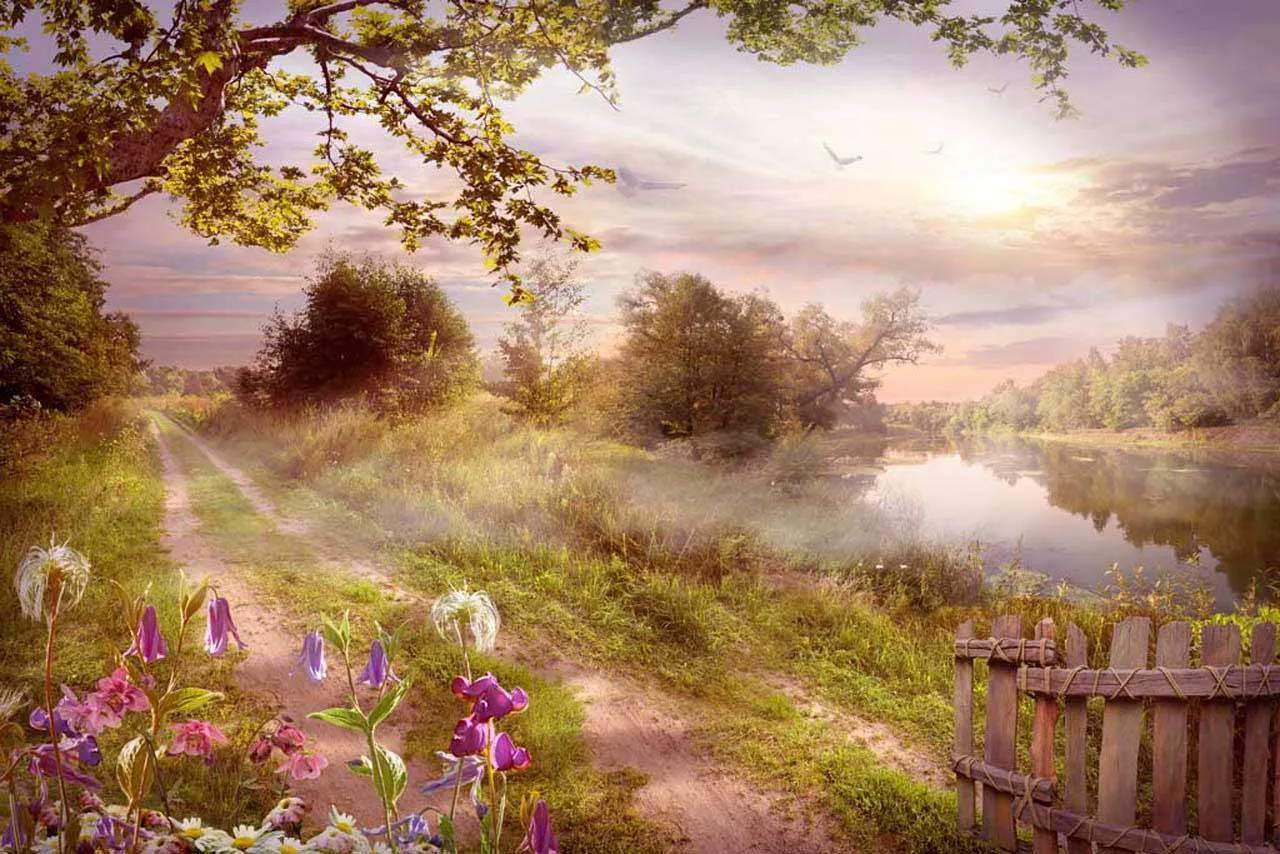 Бесшовные обои на стену: Пейзаж летний. Артикул: 7-229