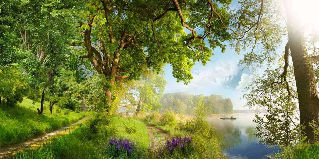 Бесшовные обои на стену: Лес с солнцем. Артикул: 7-234
