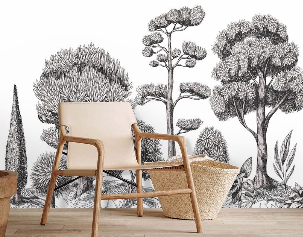 Бесшовные обои на стену: Деревья серые. Артикул: 9-1965