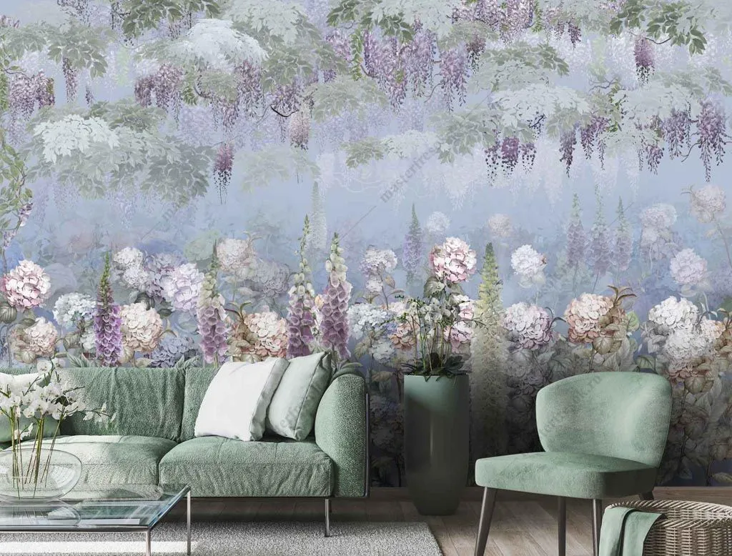 Бесшовные обои на стену: Лес в цвету. Артикул: 13-339