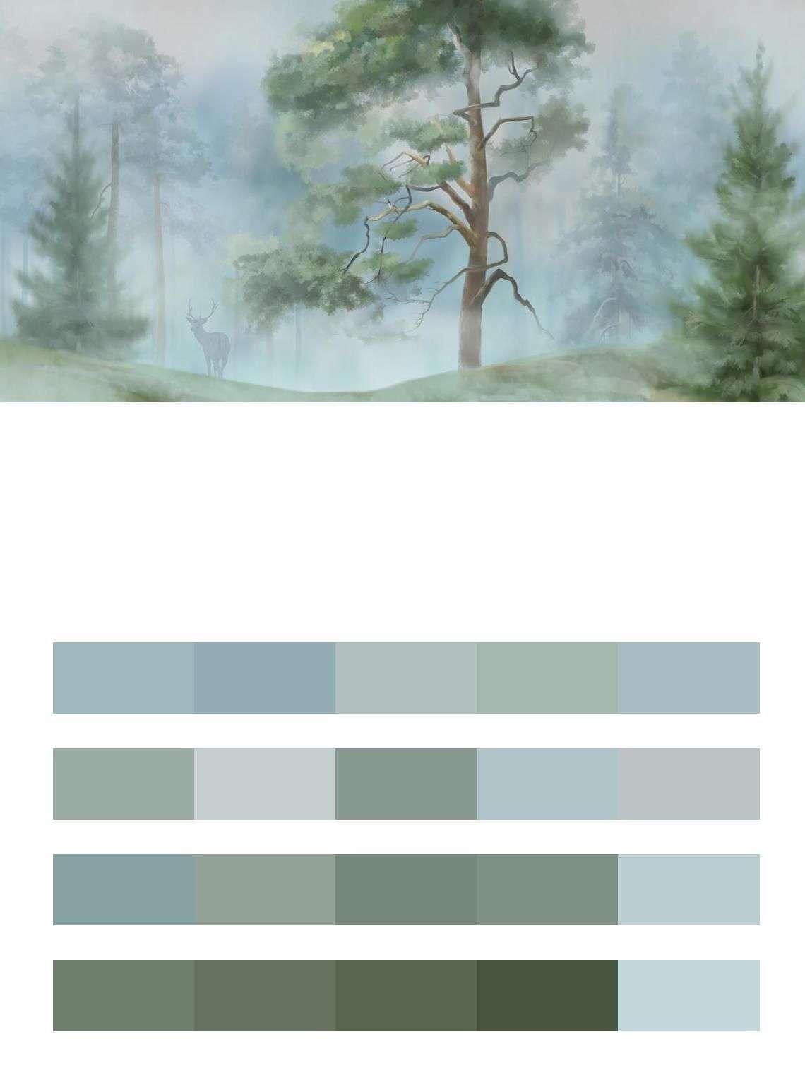 Бесшовные обои на стену: Хвойный лес утром. Артикул: 13-461