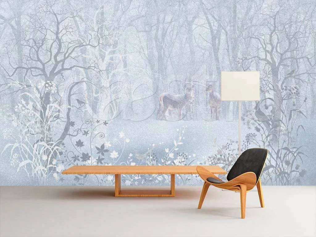 Бесшовные обои на стену: Два оленя в зимнем лесу. Артикул: 7-521
