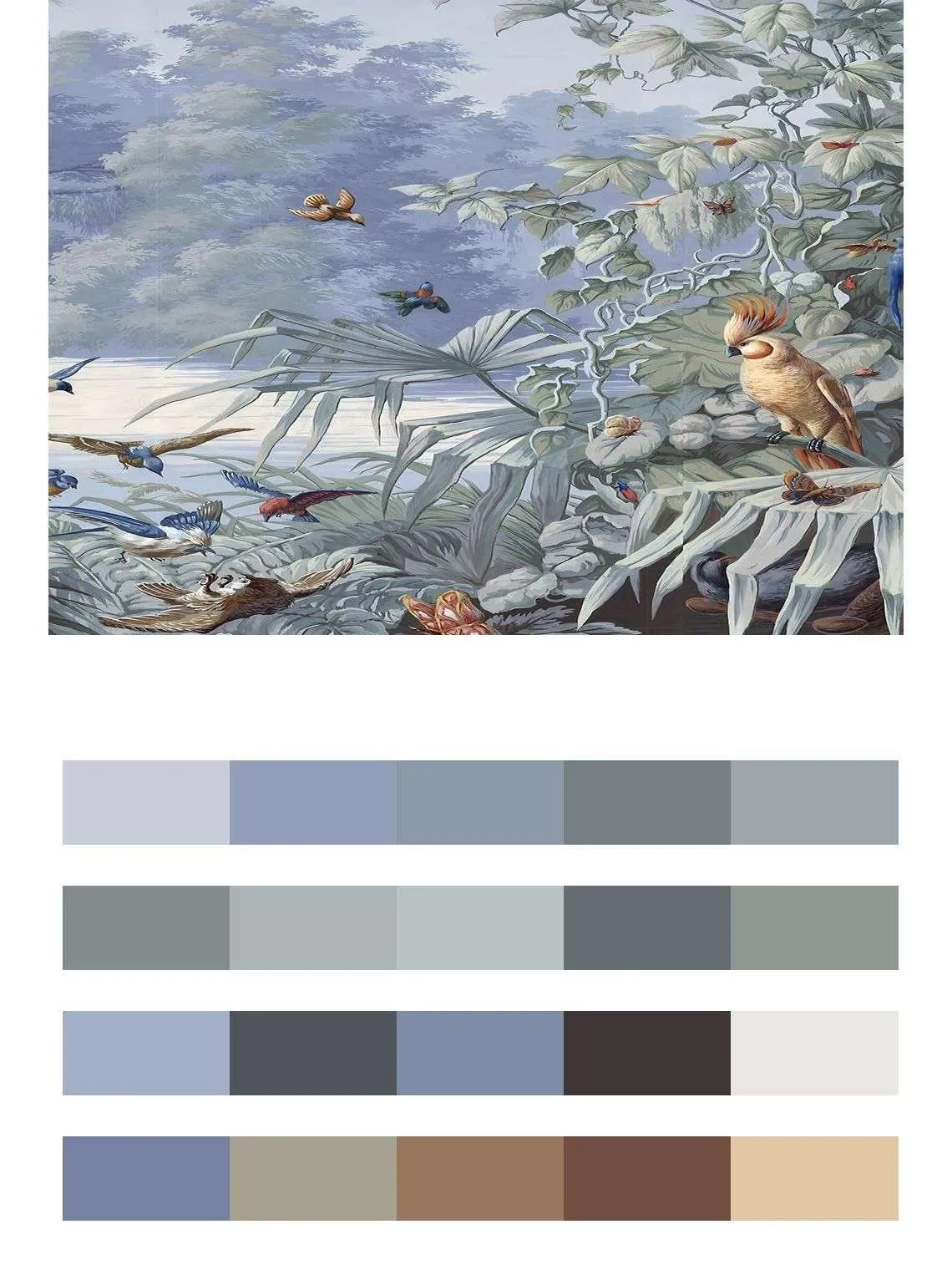 Бесшовные обои на стену: Попугай в райском саду. Артикул: 14-564