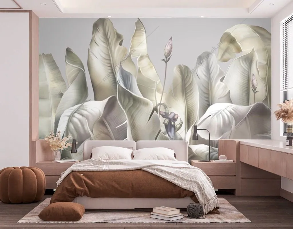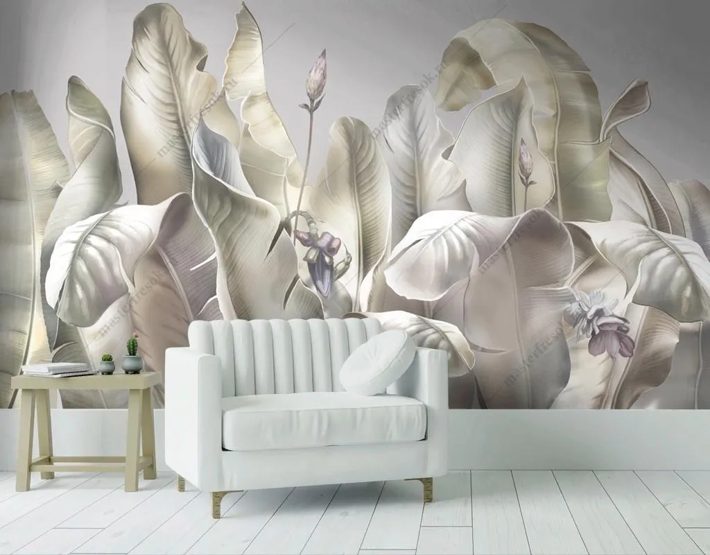 Бесшовные обои на стену: Листья бананового дерева. Артикул: 13-561