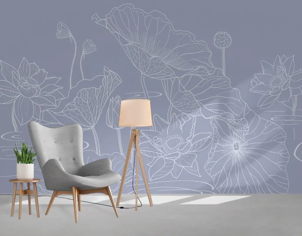 Бесшовные обои на стену: Кувшинки белые. Артикул: 13-728