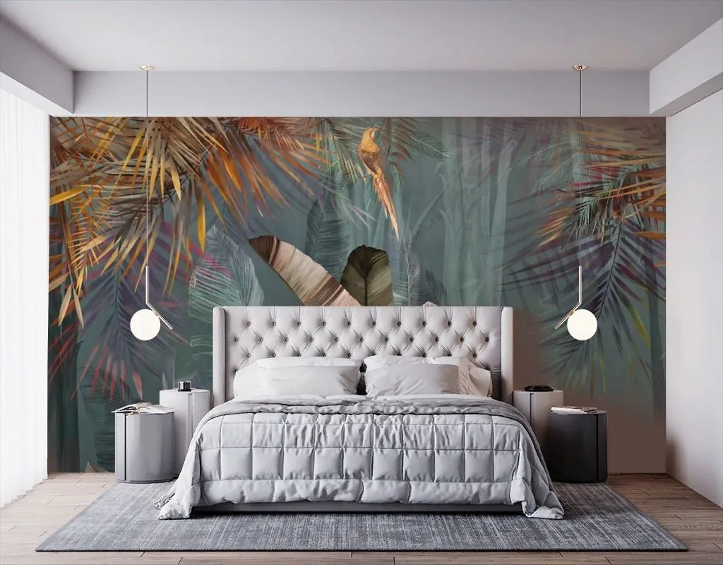 Бесшовные обои на стену: Банановые листья зеленые. Артикул: 14-623
