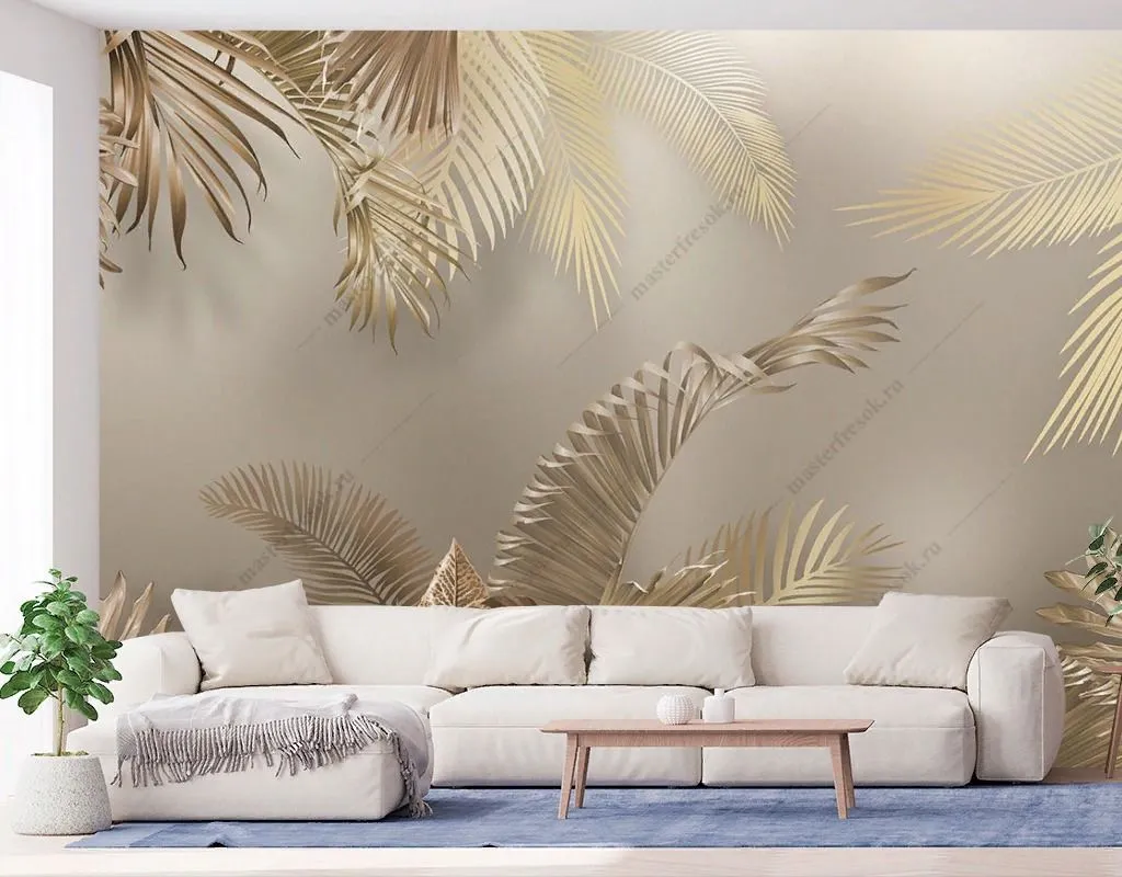 Бесшовные обои на стену: Золотые пальмовые ветви. Артикул: 9-1743