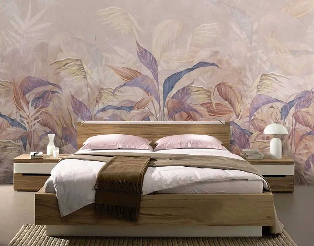 Бесшовные обои на стену: Листья розово-синие. Артикул: 9-1932