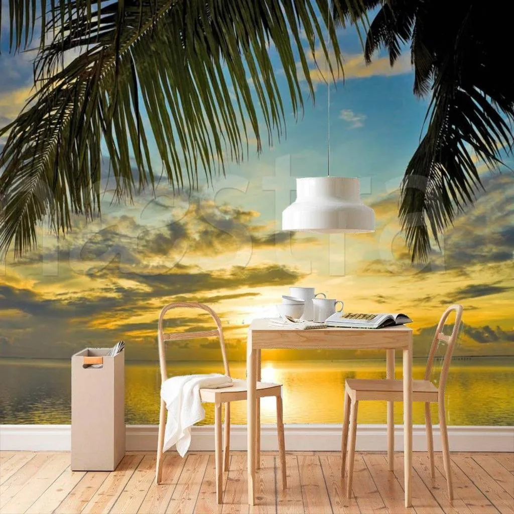 Бесшовные обои на стену: Пальмы с видом на море. Артикул: 3-080