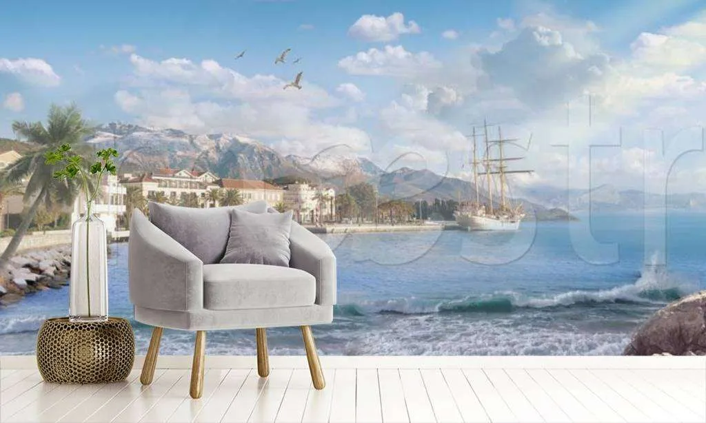 Бесшовные обои на стену: Светлый лазурный пляж. Артикул: 7-683