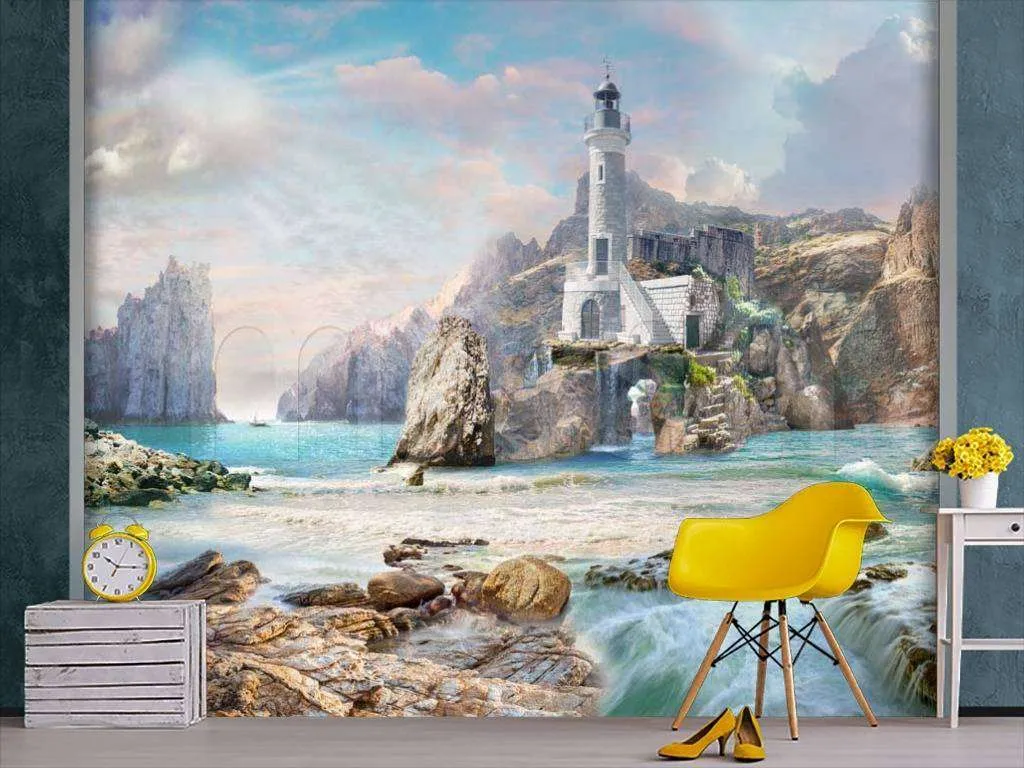 Бесшовные обои на стену: Маяк на берегу в облаках. Артикул: 7-384