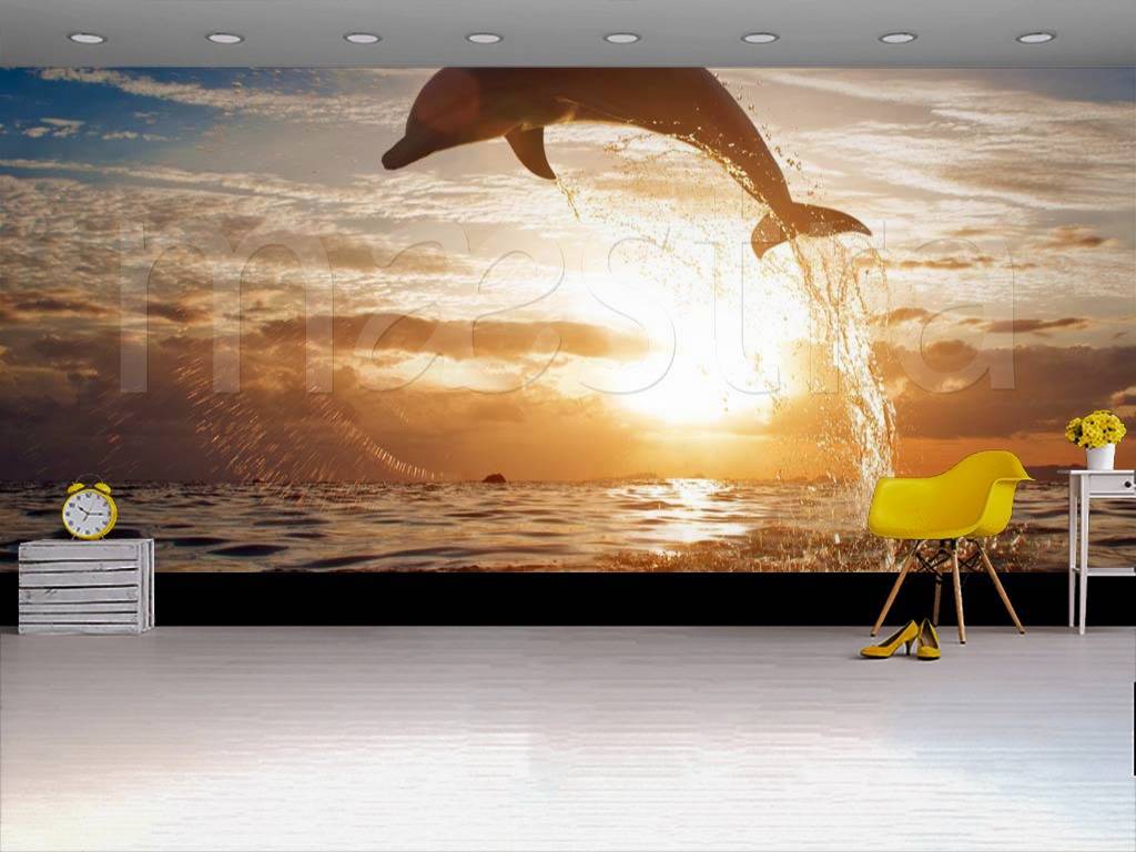 Бесшовные обои на стену: Дельфин на фоне заката. Артикул: 3-078