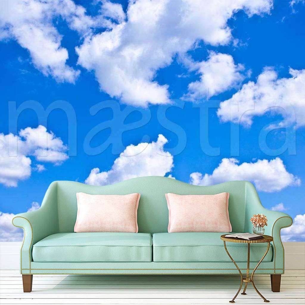 Бесшовные обои на стену: Ясное синее небо с белыми облаками. Артикул: 9-317