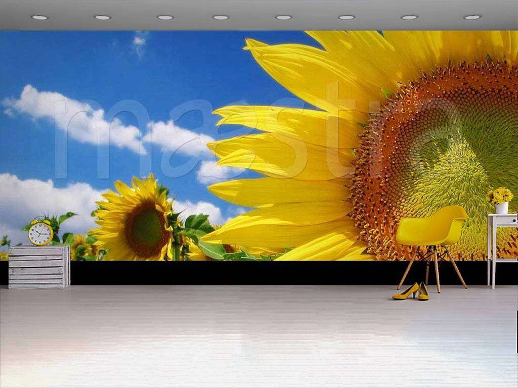 Бесшовные обои на стену: Желтый подсолнух 3 д на фоне неба. Артикул: 9-386