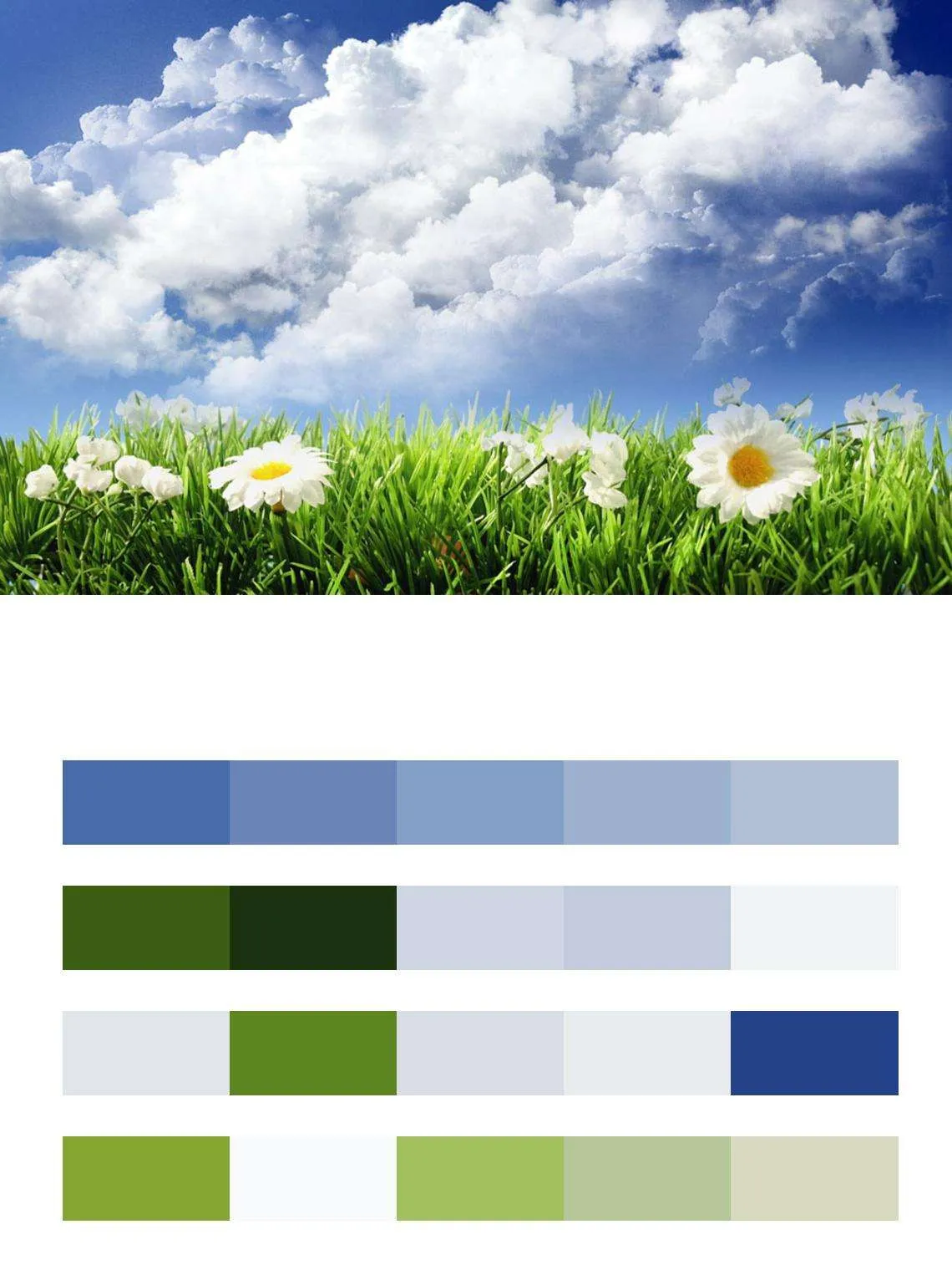 Бесшовные обои на стену: Большие ромашки 3 д в поле и белые облака. Артикул: 9-388