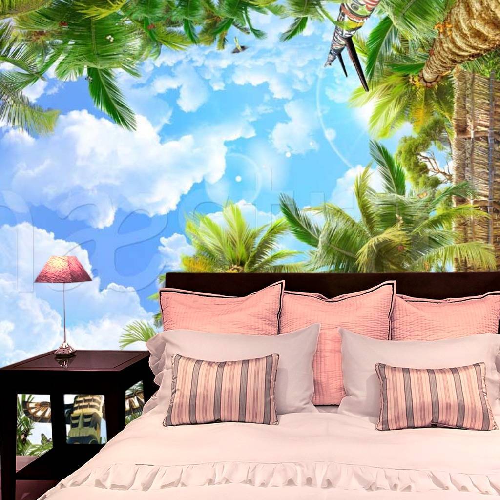 Бесшовные обои на стену: Потолочный сюжет с пальмами изящно уходящими вверх. Артикул: 11-137