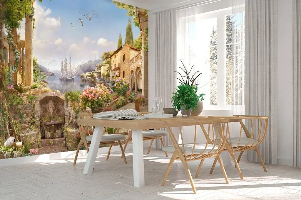 Бесшовные обои на стену: Набережная античного города. Артикул: 11-067