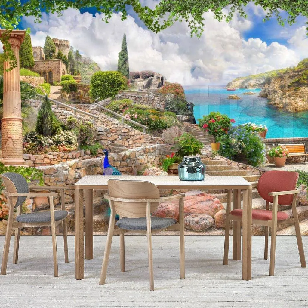 Бесшовные обои на стену: Пейзаж городской с лестницей и колонной. Артикул: 7-088