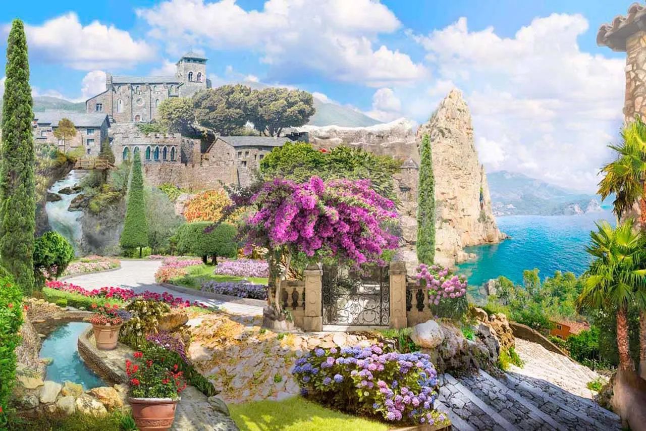 Бесшовные обои на стену: Старый замок в парке. Артикул: 7-208