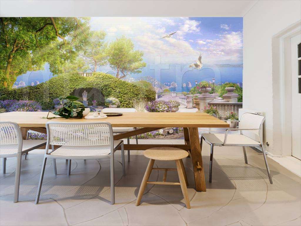 Бесшовные обои на стену: Балкон с бассейном в парке. Артикул: 7-220