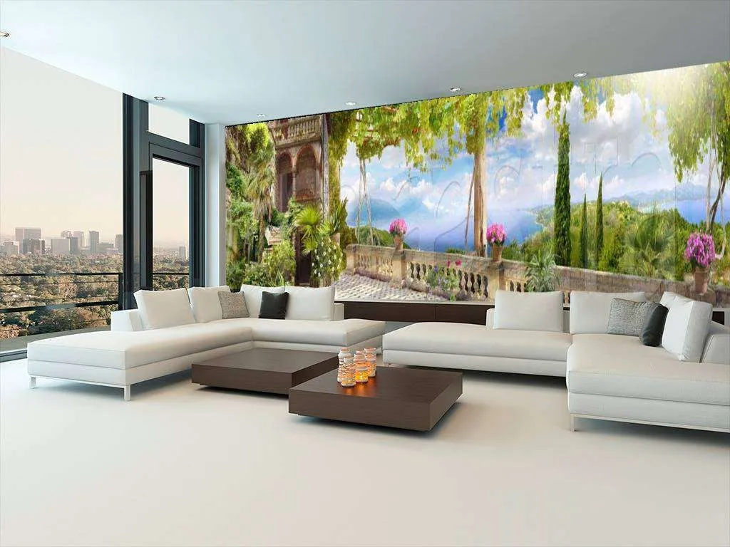 Бесшовные обои на стену: Панорамная терраса с видом на море. Артикул: 7-232