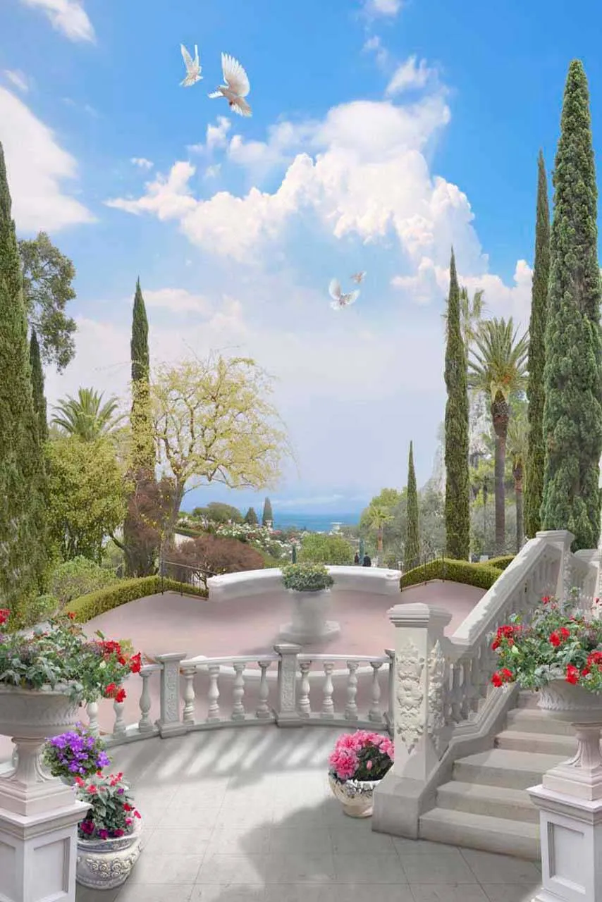 Бесшовные обои на стену: Дворцы и парки с кипарисами. Артикул: 7-287