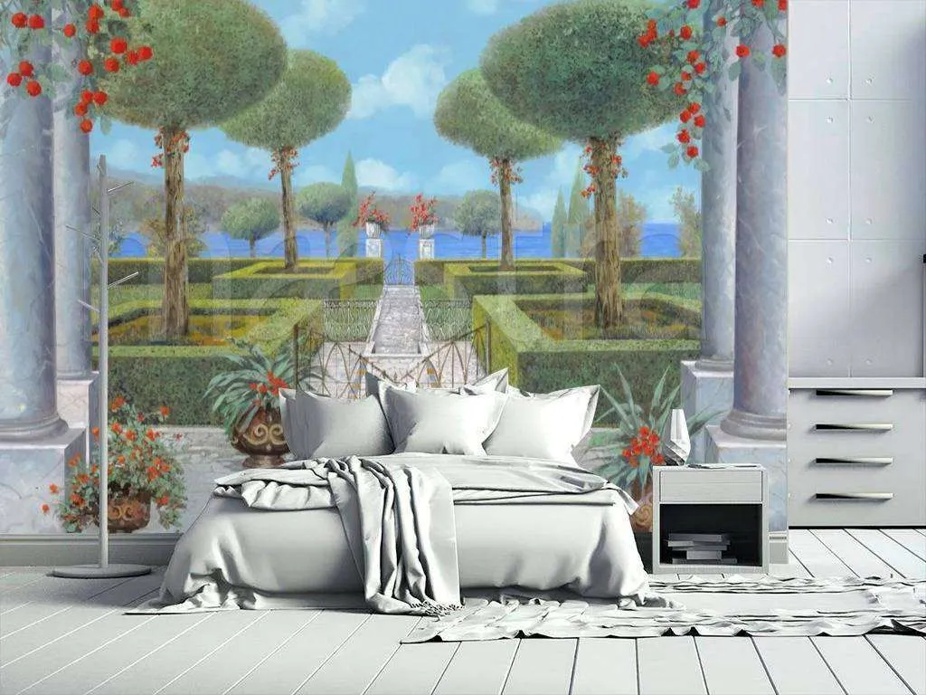 Бесшовные обои на стену: Вид на колонны с выходом в парк. Артикул: 8-058