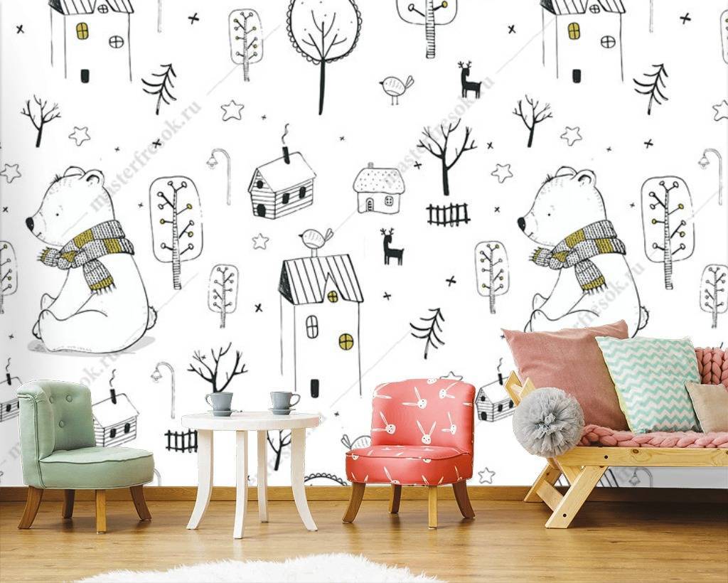 Бесшовные обои на стену: Домики и мишки. Артикул: 12-655