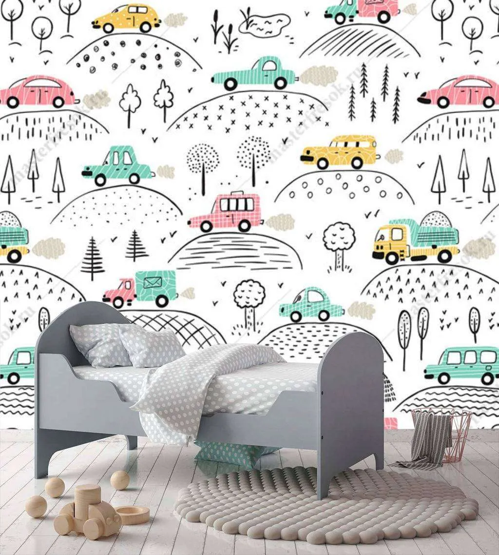 Бесшовные обои на стену: Машинки на холмах. Артикул: 12-668