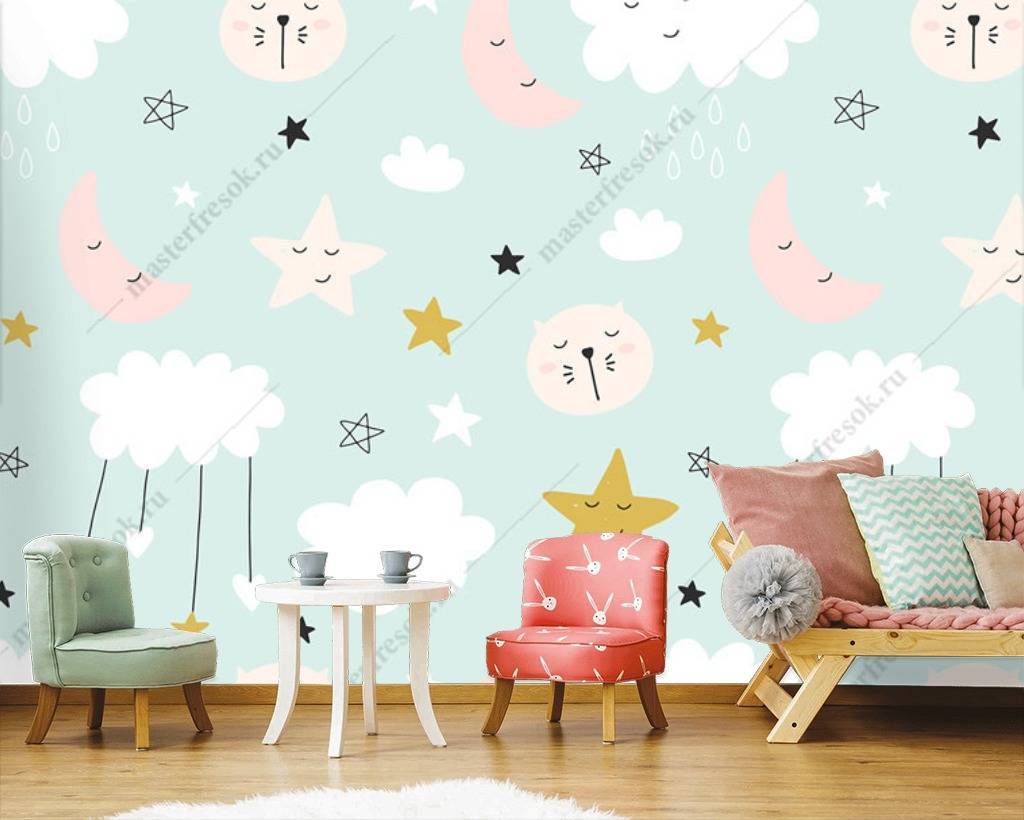 Бесшовные обои на стену: Облака и звездочки. Артикул: 12-672