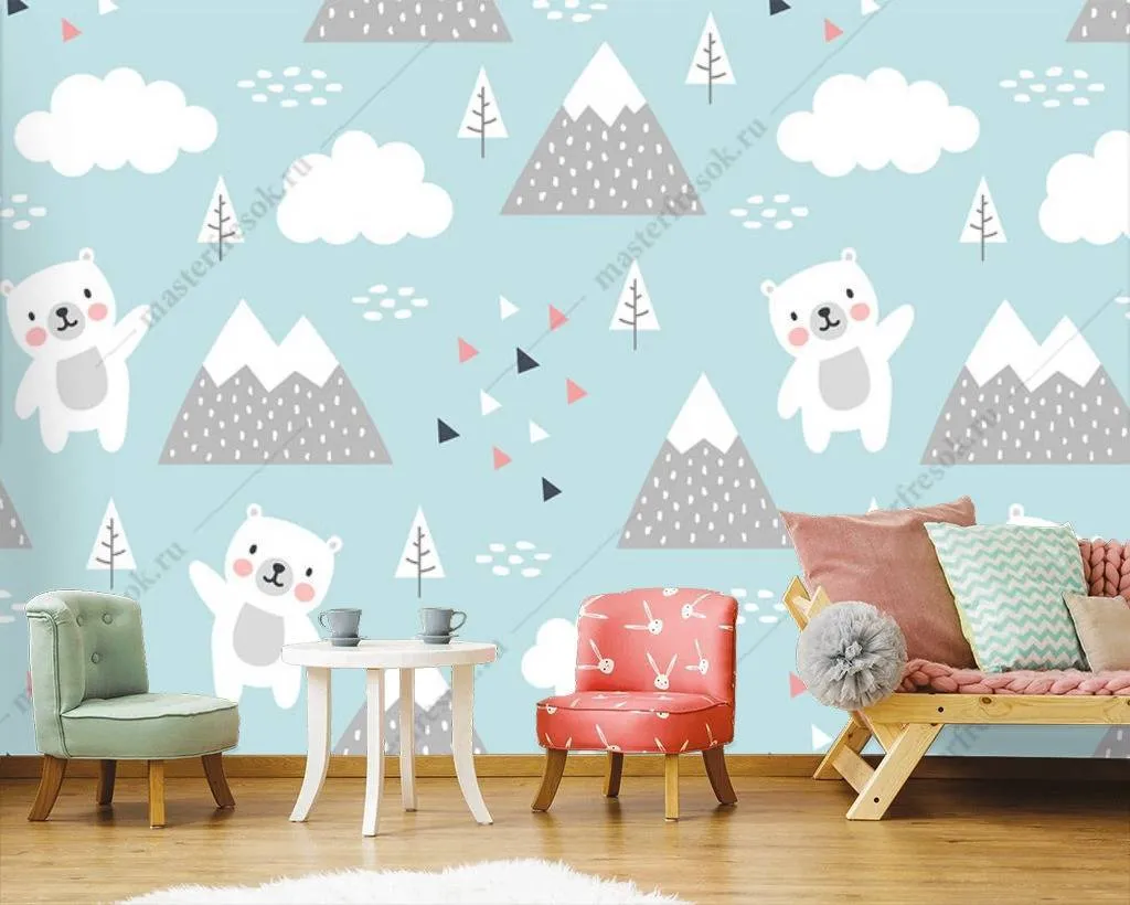 Бесшовные обои на стену: Пики и мишки. Артикул: 12-677