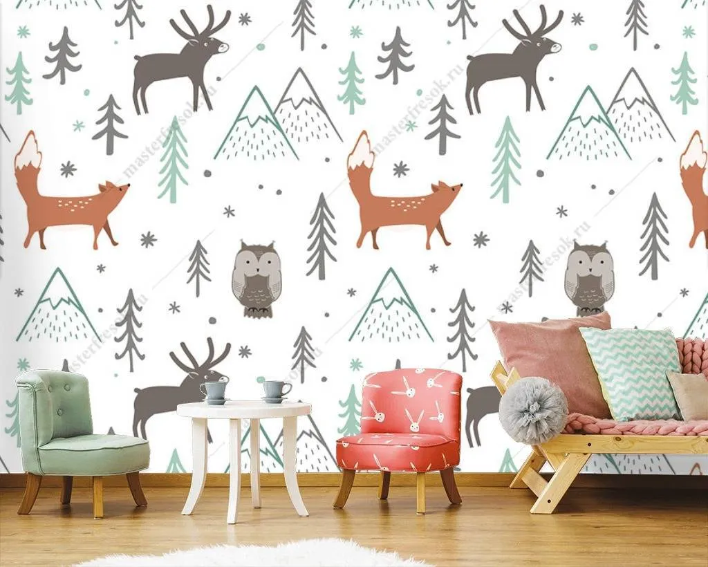 Бесшовные обои на стену: Лисички и пики. Артикул: 12-683