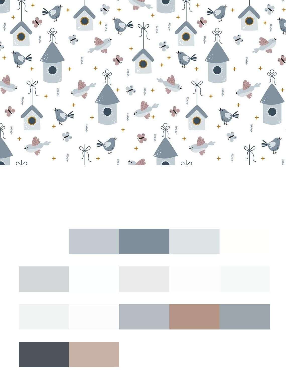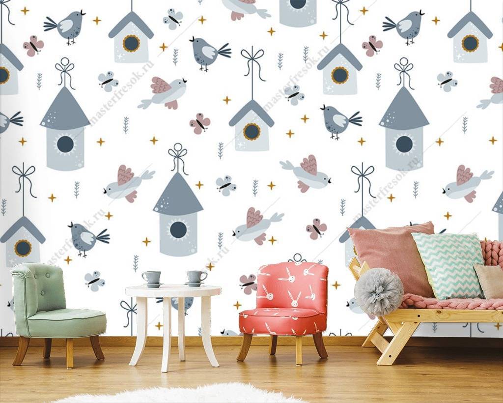 Бесшовные обои на стену: Домики для птиц. Артикул: 12-689