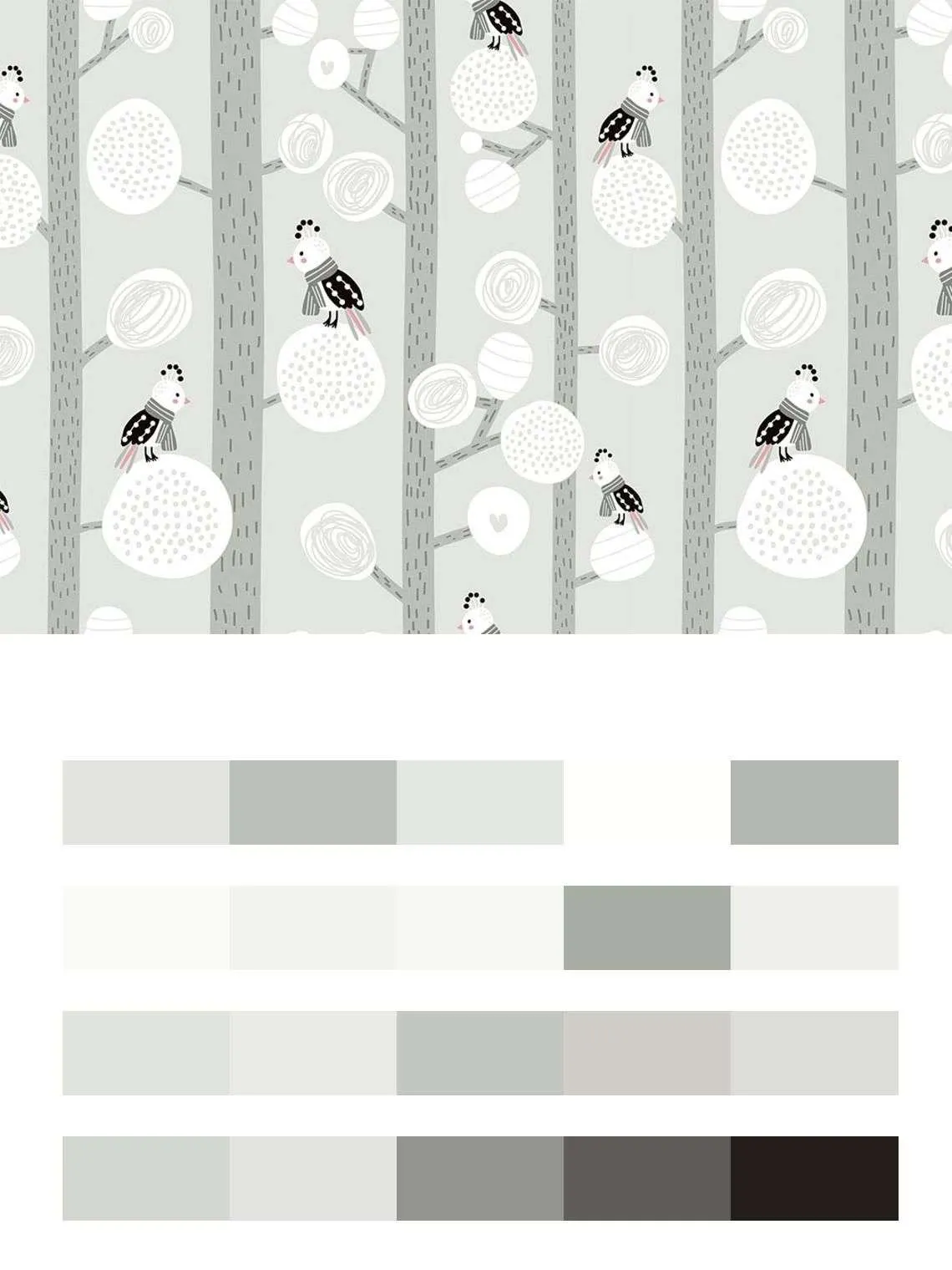 Бесшовные обои на стену: Лес серый с птичками. Артикул: 12-713