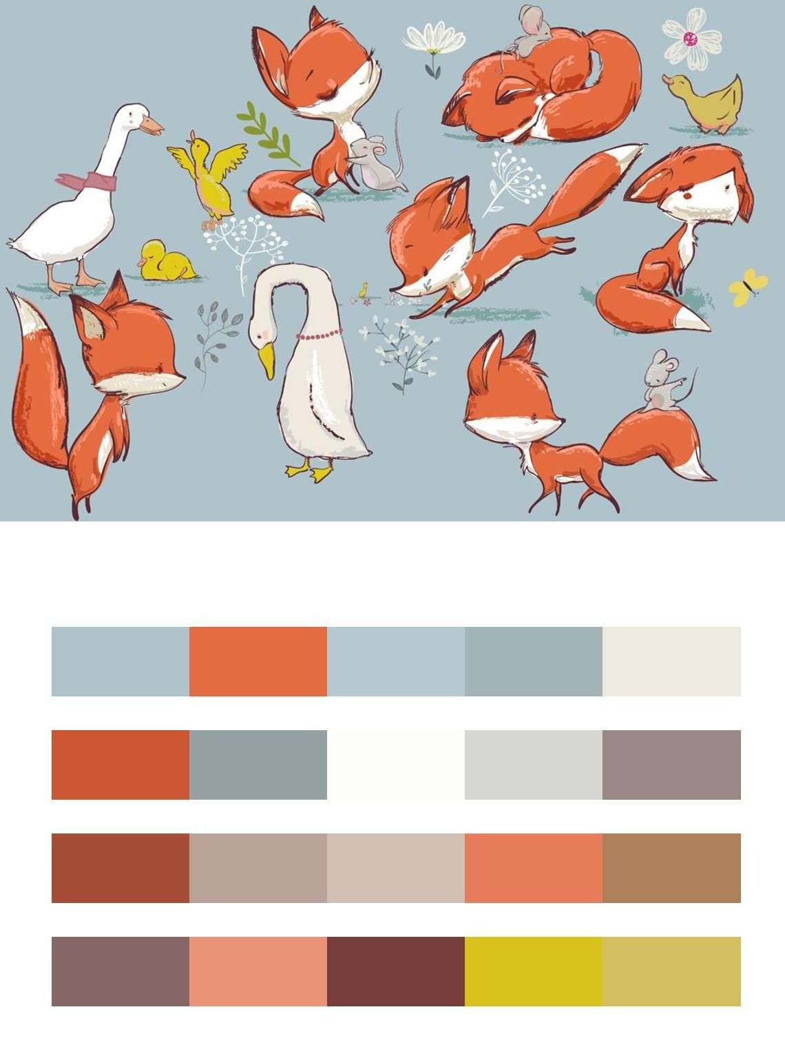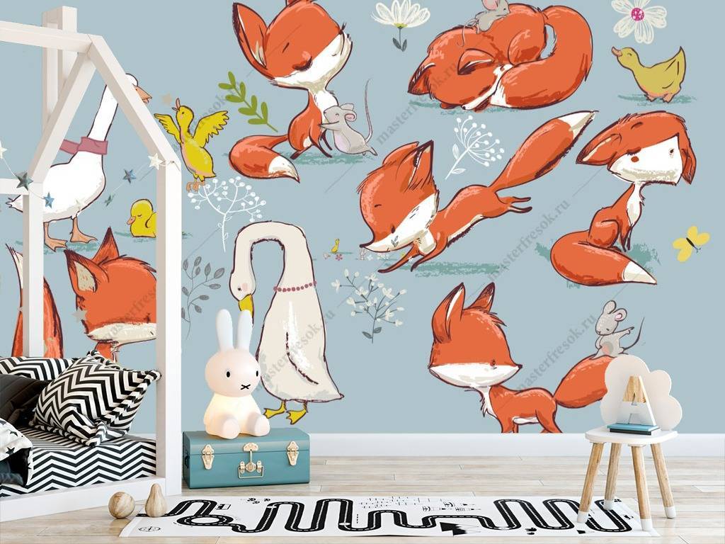 Бесшовные обои на стену: Лисички на сером фоне. Артикул: 12-722