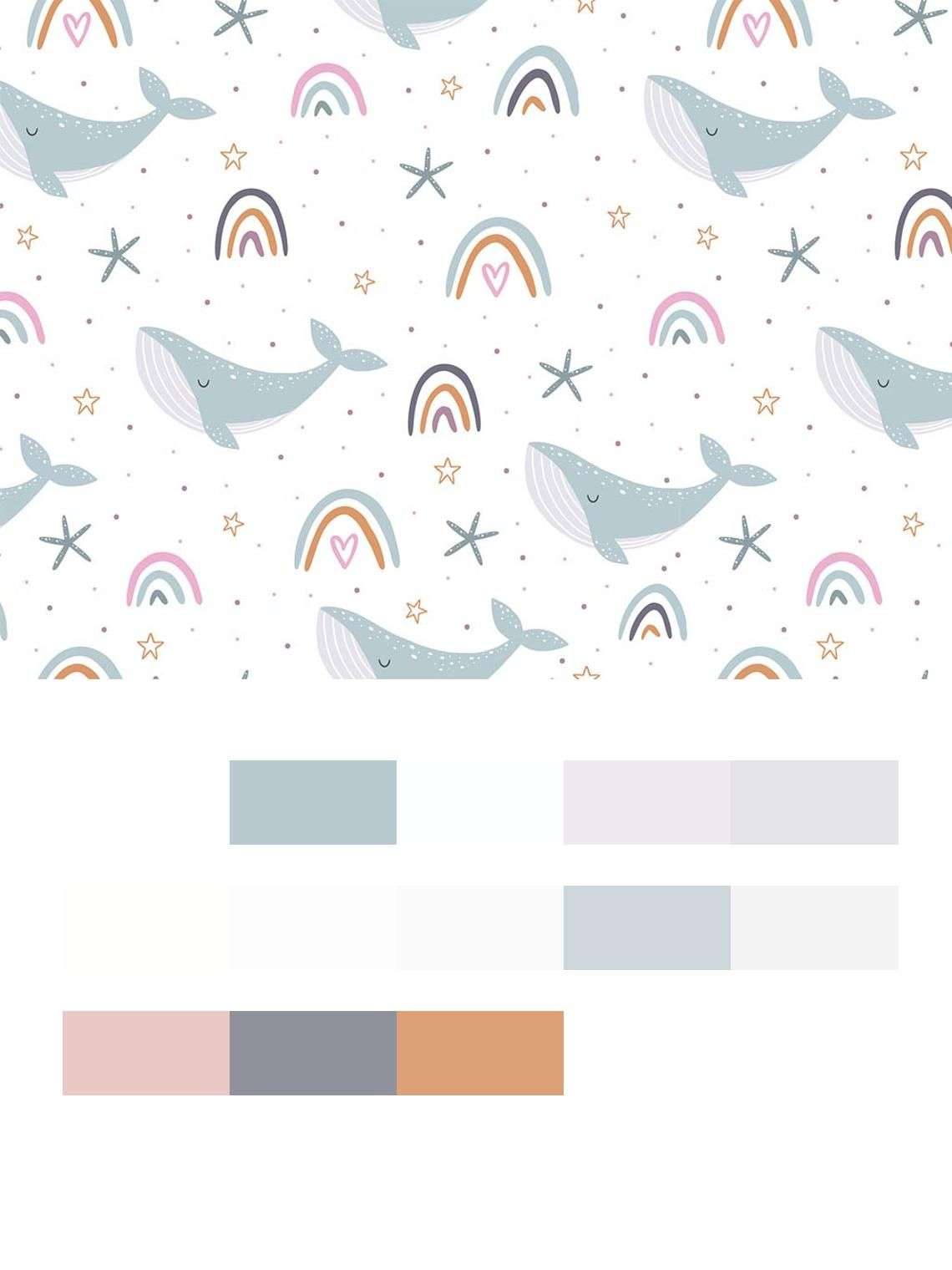 Бесшовные обои на стену: Киты и радуги. Артикул: 12-740