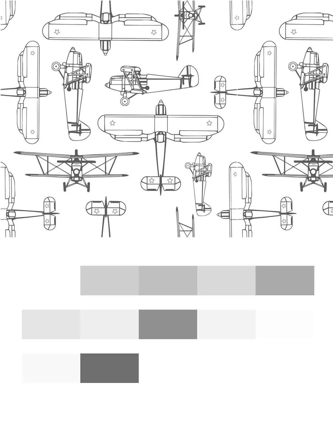 Бесшовные обои на стену: Самолеты рисунок. Артикул: 12-748