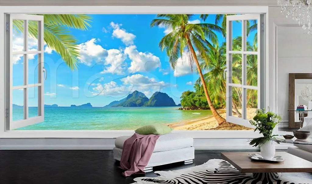 Бесшовные обои на стену: Вид из окна на райское море. Артикул: 11-120