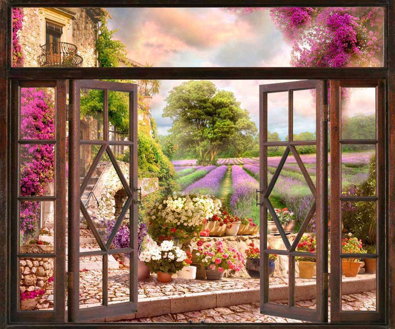 Бесшовные обои на стену: Окно с видом на лавандовые поля. Артикул: 7-656