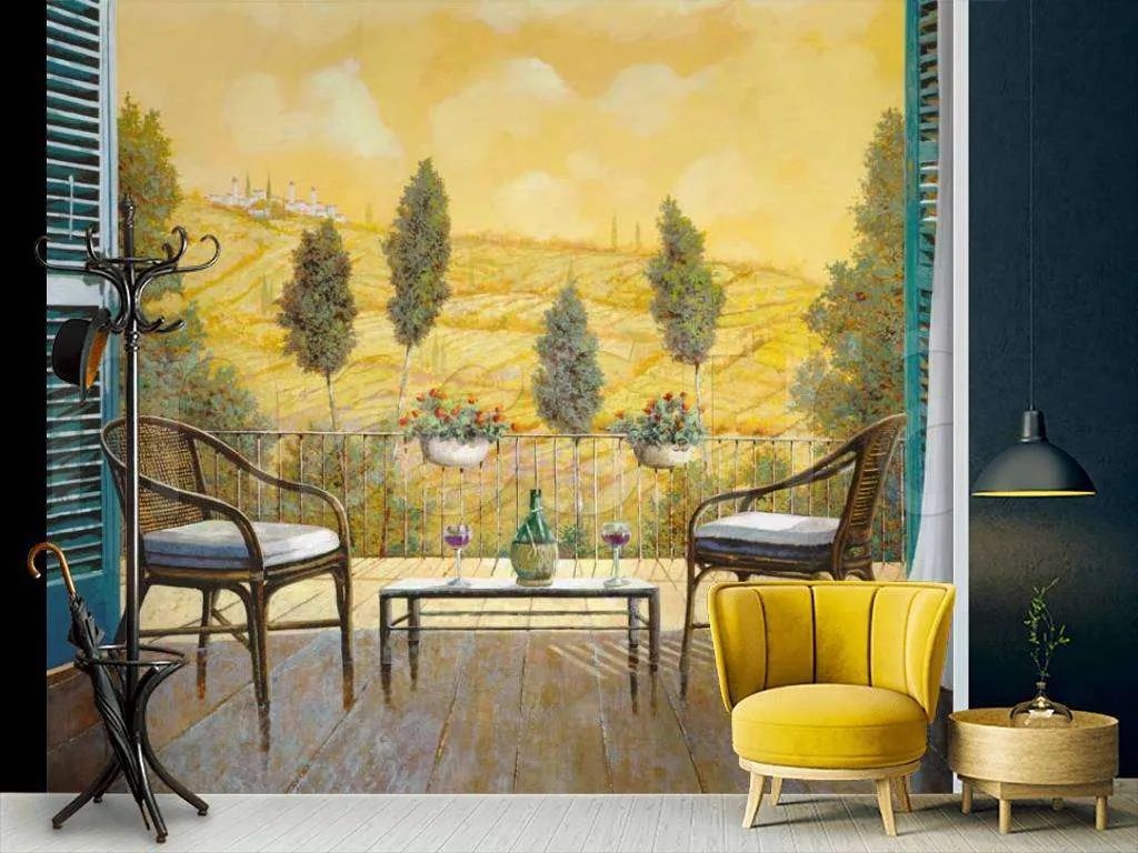 Бесшовные обои на стену: Вид с балкона на поля. Артикул: 8-035